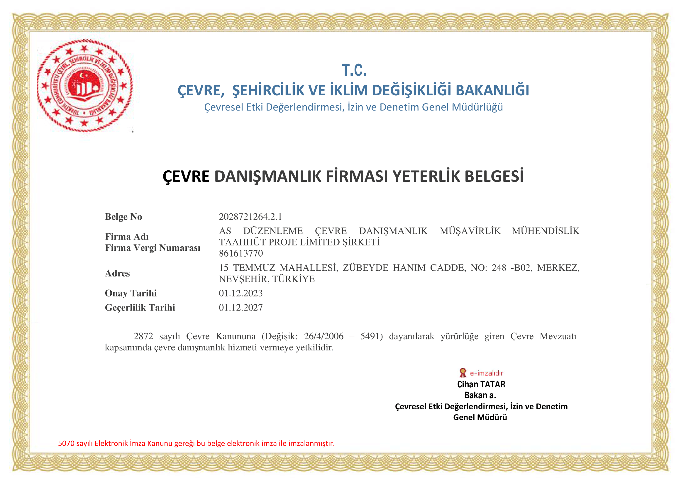 Çevre danışmanlık hizmetlerimizden yararlanan birçok proje var.